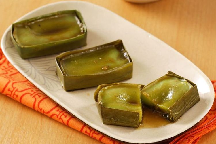 - Letakkan adonan isi pada bagian bawah cetakan yang terbuat dari daun pandan.